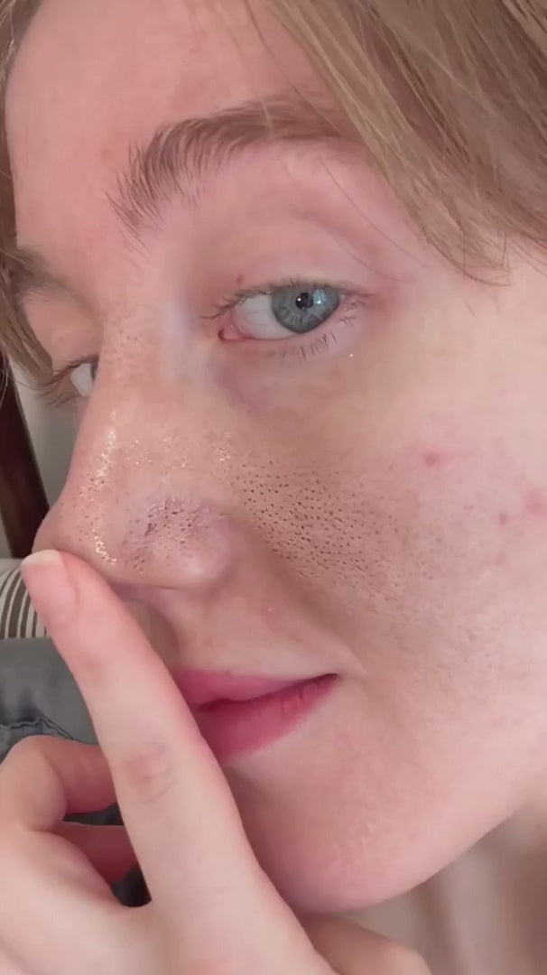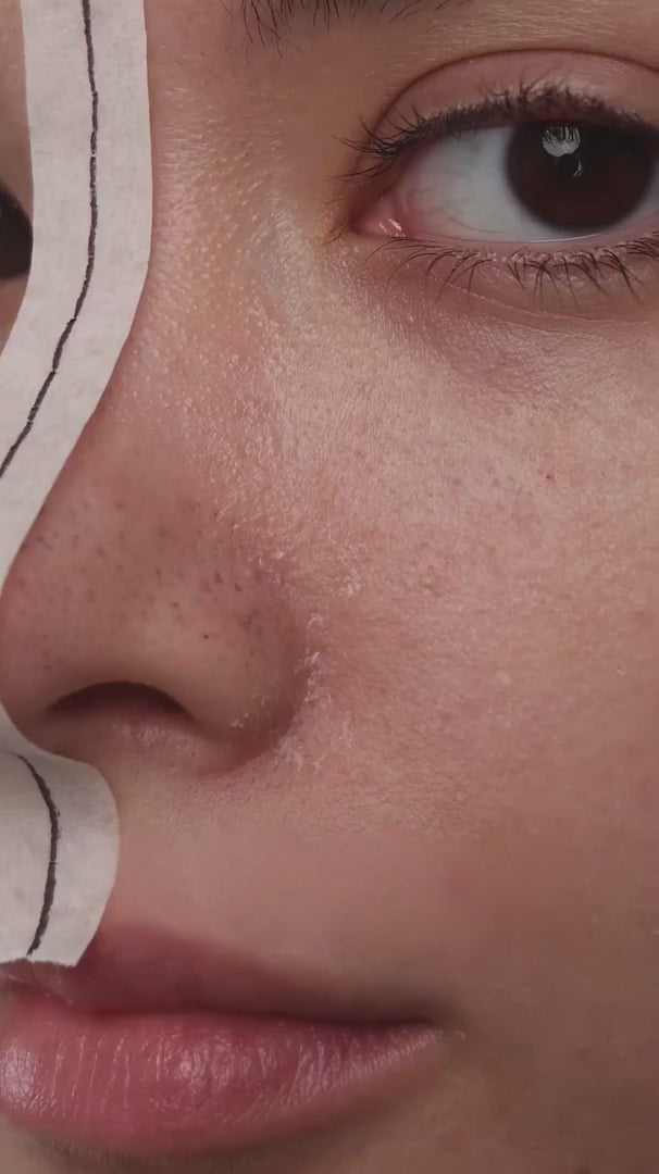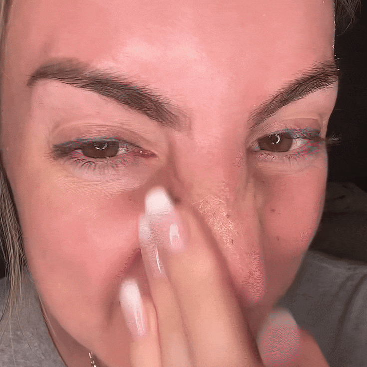 ÉTAPE 3 : Pressez et tapotez doucement sur la zone T, le nez, le menton et toutes les zones avec des pores visibles — ne frottez pas, ne tirez pas.