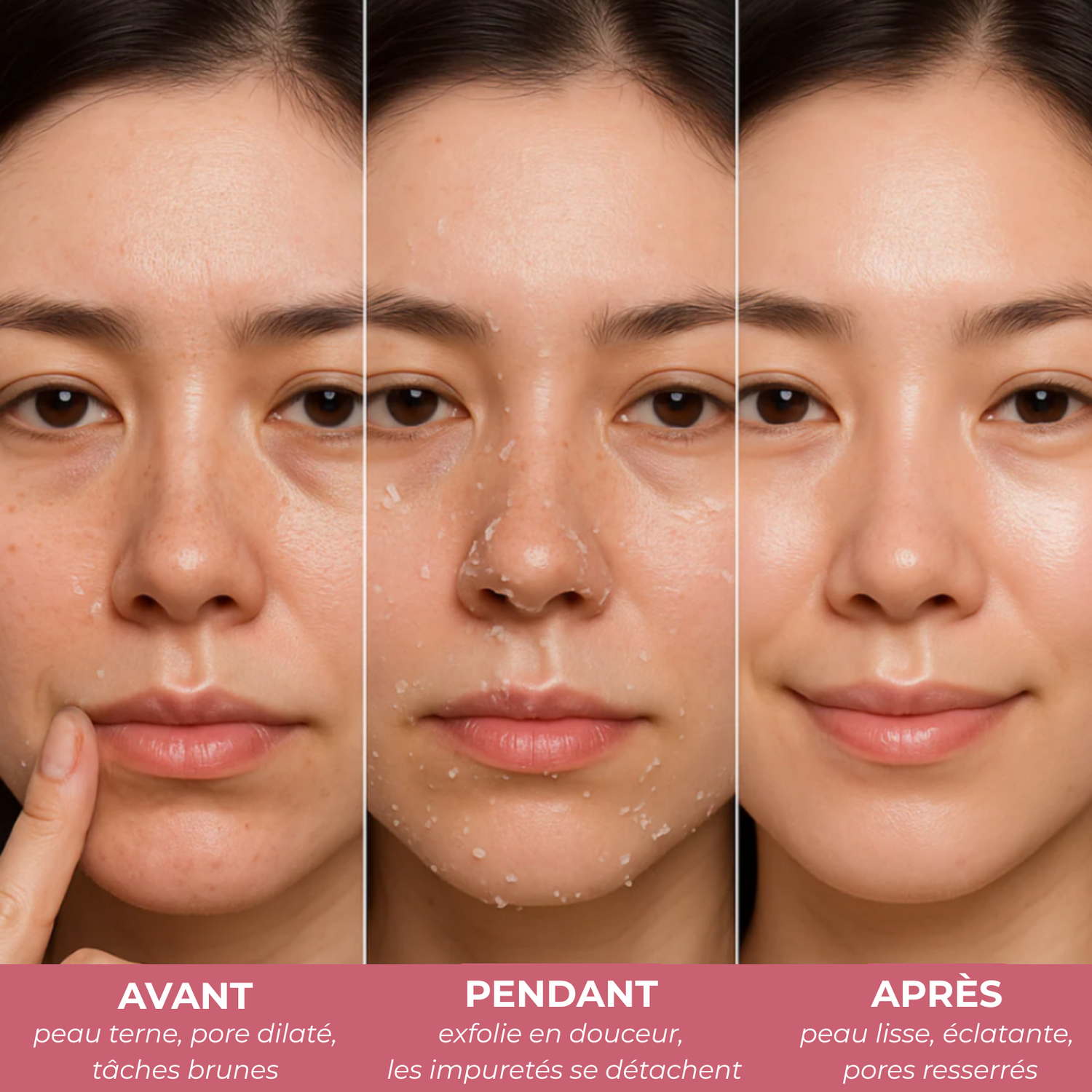 Élimine les cellules mortes et révèle une peau plus douce, plus nette, plus lumineuse — dès la première application.
