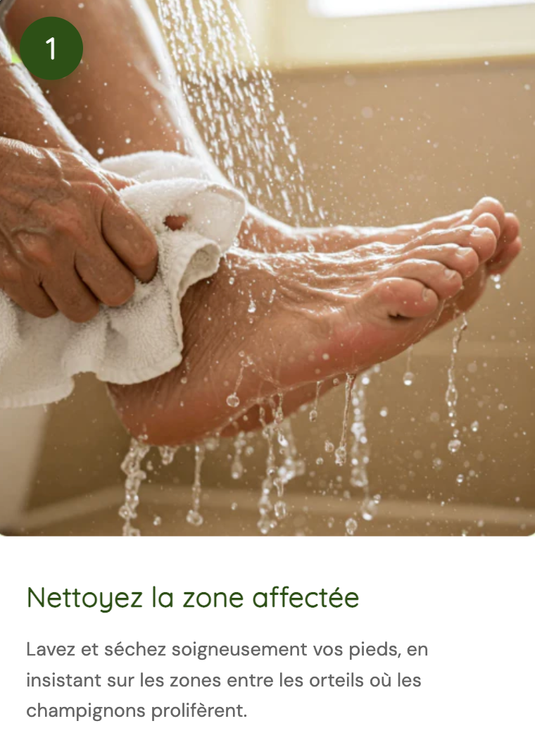 - Laissez agir 1 à 2 minutes pour cibler efficacement les champignons.