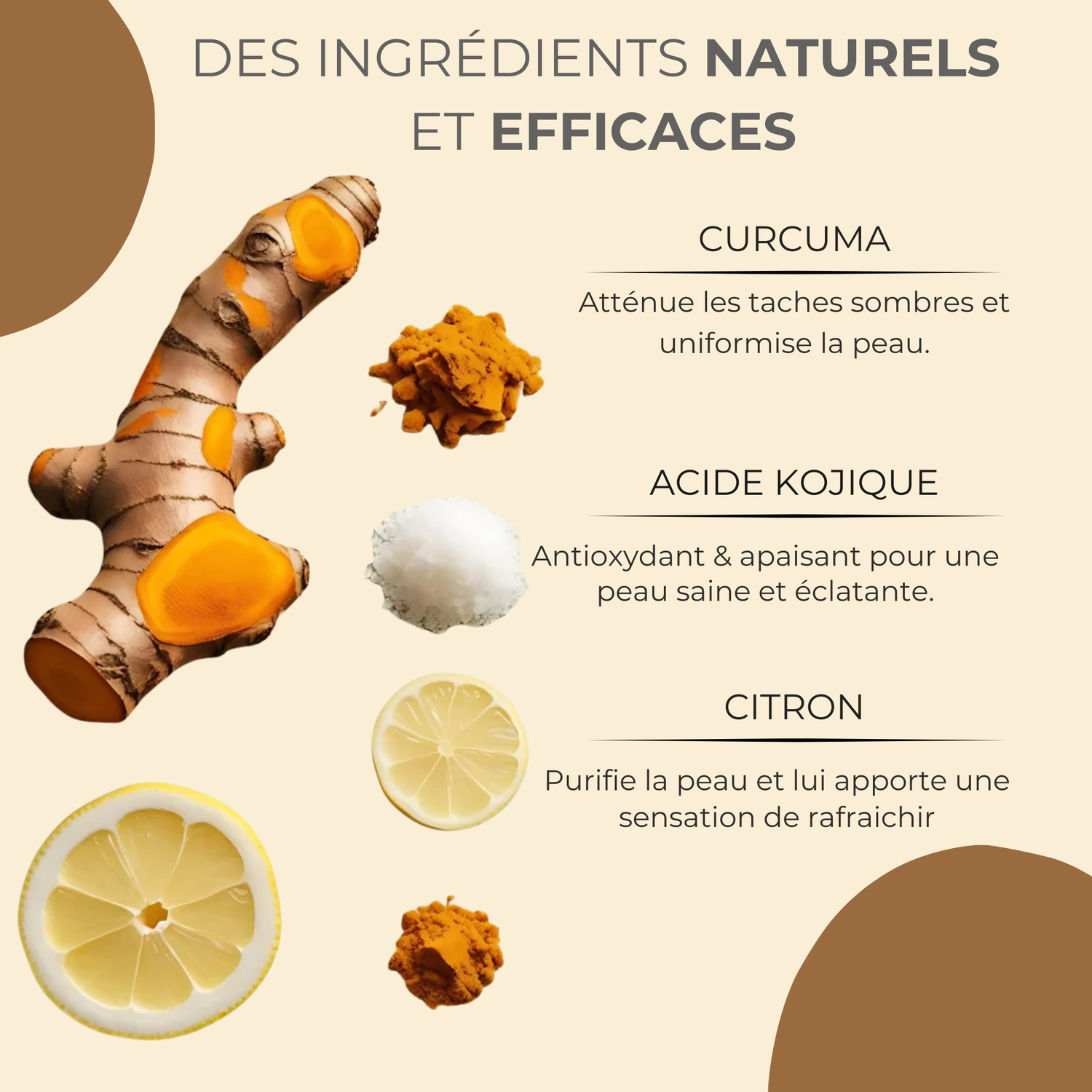Curcuma : aide à unifier le teint et à apaiser.