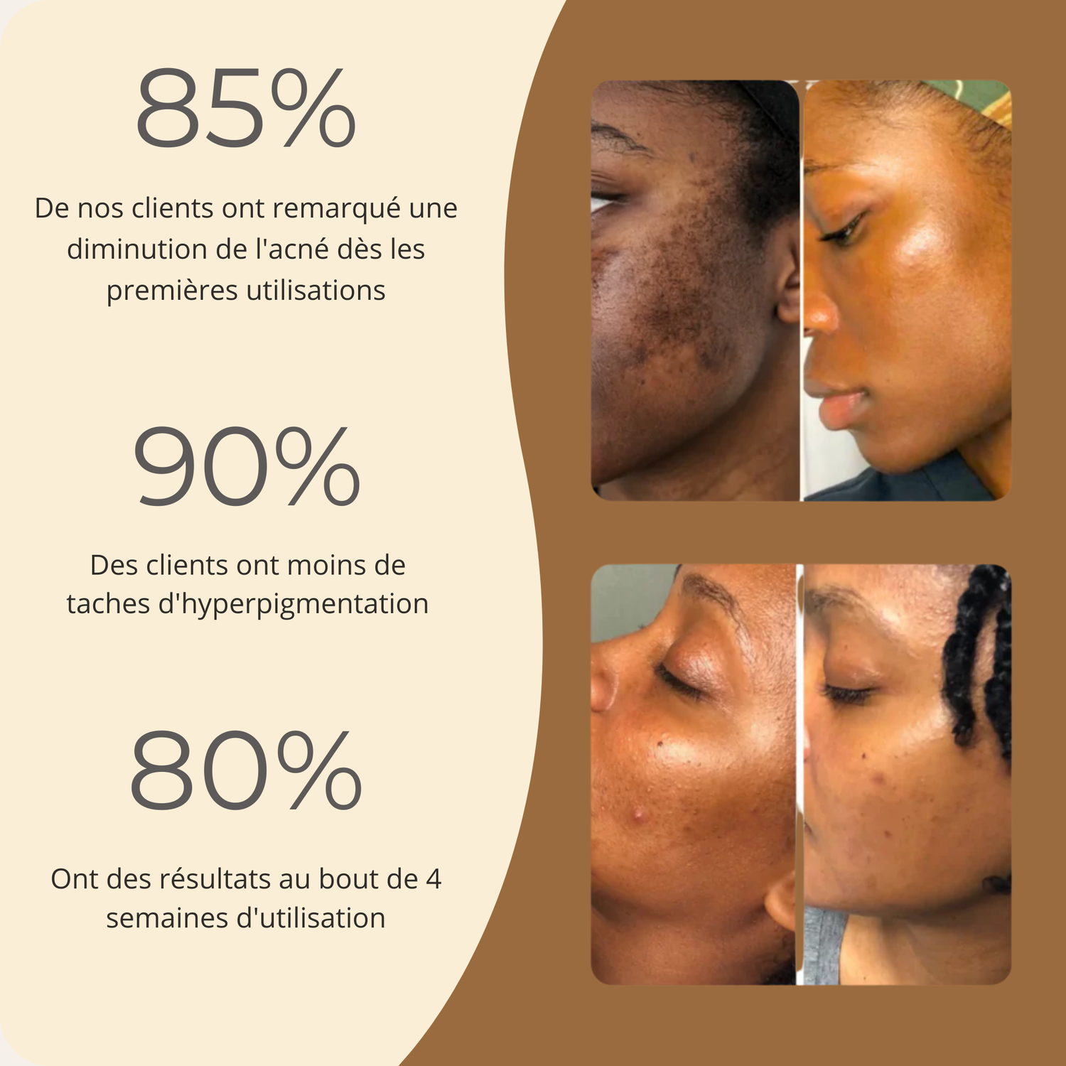 ont constaté une diminution visible des taches et zones foncées dès les premières semaines